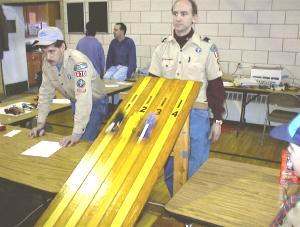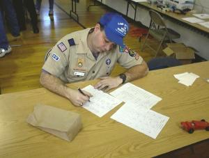 Tallying up the results was no easy chore! Cub Master Urban had the honor of that task. |